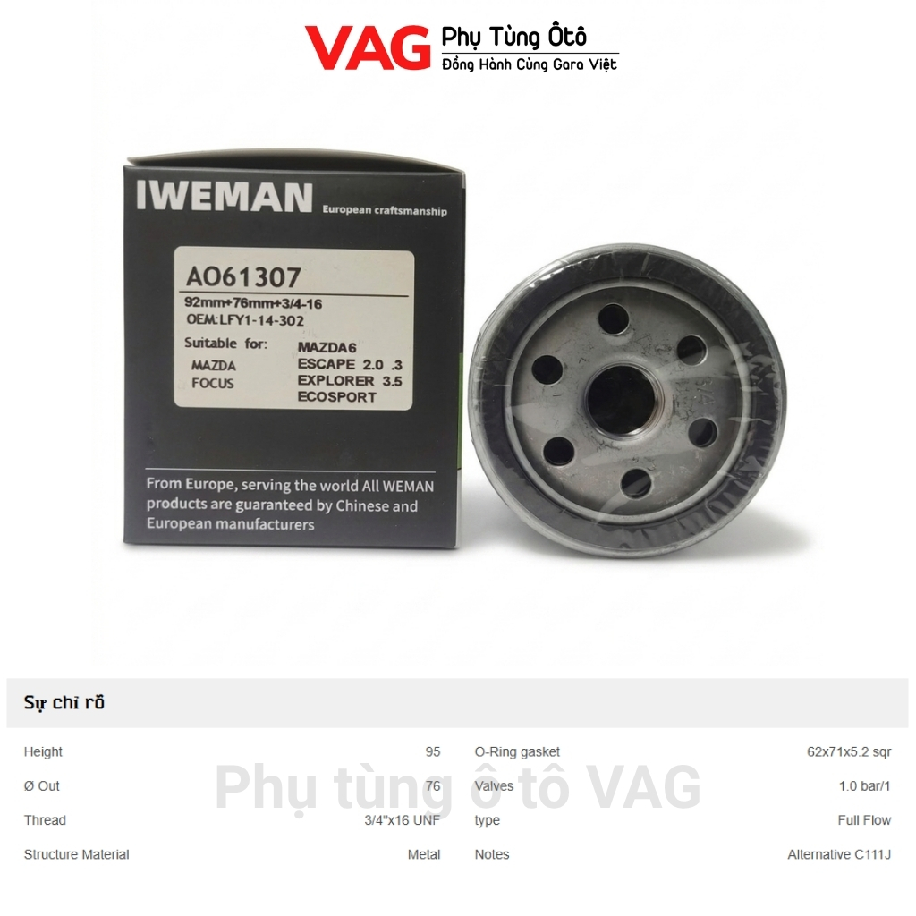 Điểm mạnh của Lọc nhớt Weman AO61607: